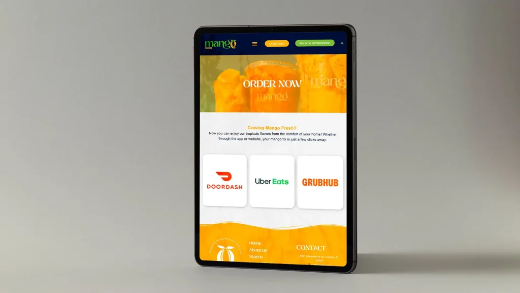 Foi exatamente essa abordagem que foi adotada no desenvolvimento do site do Mango Fresh. Assim, um ambiente digital moderno, funcional e alinhado com a identidade da marca foi construído.